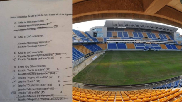 La afición del Cádiz boicotea el cambio de nombre del Carranza: estadio Santiago Abascal o Francisco Franco, entre los más votados