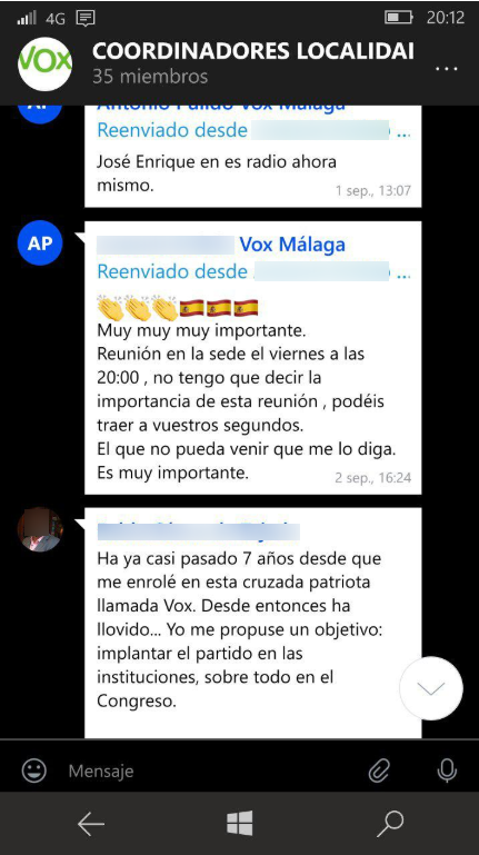 Sede de VOX Málaga el 4 de septiembre. Reunión de coordinadores convocada por Antonio Pulido, vocal del CEP (se adjunta captura de pantalla de dicha convocatoria el miércoles 2 de septiembre, cuando las elecciones internas habían sido convocadas el día anterior.