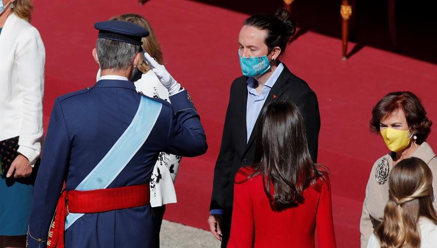 He visto, desde México, la verdaderamente vergonzosa fiesta de la Hispanidad de hoy en la Plaza de la Armería… y ¡QUÉ ASCO! ¿Cómo es posible llamar “celebración”… a eso que visto con el doctor falconeti, el verdaderamente asqueroso…, ahora moñas, recién salido de alguna alcantarilla, ¡todavía no de la cárcel!, que no entiendo cómo se le ha permitido presentarse de esa guisa asquerosa… y todos los que tienen títulos y “títulas” de ministros y ministras… ¡Qué horror!