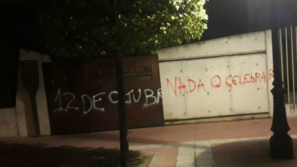 Ultraizquierdistas vandalizan la Casa Museo Colón de Valladolid con pintadas contra la celebración del 12 de Octubre