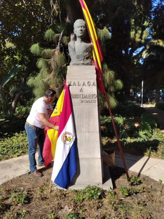 El lugar elegido fue el Parque de Málaga, concretamente en los monumentos dedicados a dos poetas muy representativos de la Hispanidad : el nicaraguense Rubén Darío y malagueño Salvador Rueda. Al acto acudió un nutrido grupo de personas, debidamente dotadas de mascarillas y guardando la distancia que establecen las normas establecidas por las autoridades.