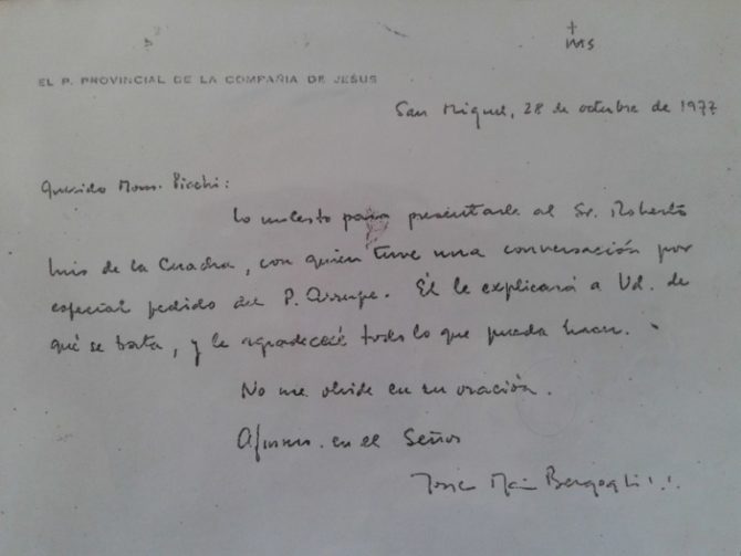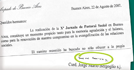 Se trata de la firma de Jorge Mario Bergoglio quien, como masón, ponía al final de su nombre los tres puntos con los que firman habitualmente los hijos de la viuda. Nos consta que lo hacía, al menos, desde 1977, porque es la fecha de la firma más antigua que hemos encontrado suya. Si esto es así, como parece, nos encontramos ante alguien que tuvo desde un principio una intención oculta dentro de la Iglesia, pues solo 8 años después de su ordenación sacerdotal ya aparece firmando como masón.