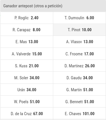 Muchos serán los contendientes que sean fieles a la cita de la última grande del año. Tras el sinsabor de haber pedido el último Tour de Francia en la última crono, Primož Roglič llegará a la Península Ibérica como máximo favorito a la victoria, según las apuestas deportivas online de Bwin.