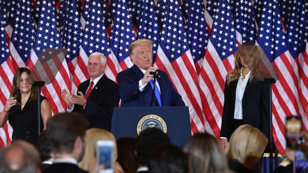 Unas horas antes, Trump declaró que hay “fraude” en las elecciones y señaló que está listo para dirigirse a la Corte Suprema para que toda la votación (sic) se detenga” y prevenir que se hallen “nuevas papeletas a las 04:00 de la mañana”.