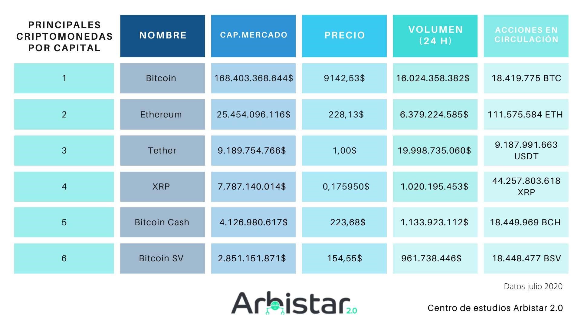 El Centro de Estudios de Arbistar 2.0 escogió un día de julio de 2020 para realizar un análisis sobre los valores de las criptomonedas.