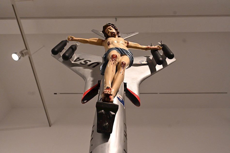 ¿Qué dirá la fiscal Verdugo? El provocador artista argentino León Ferrari se burla de los católicos mostrando a Cristo crucificado sobre un avión bombardero