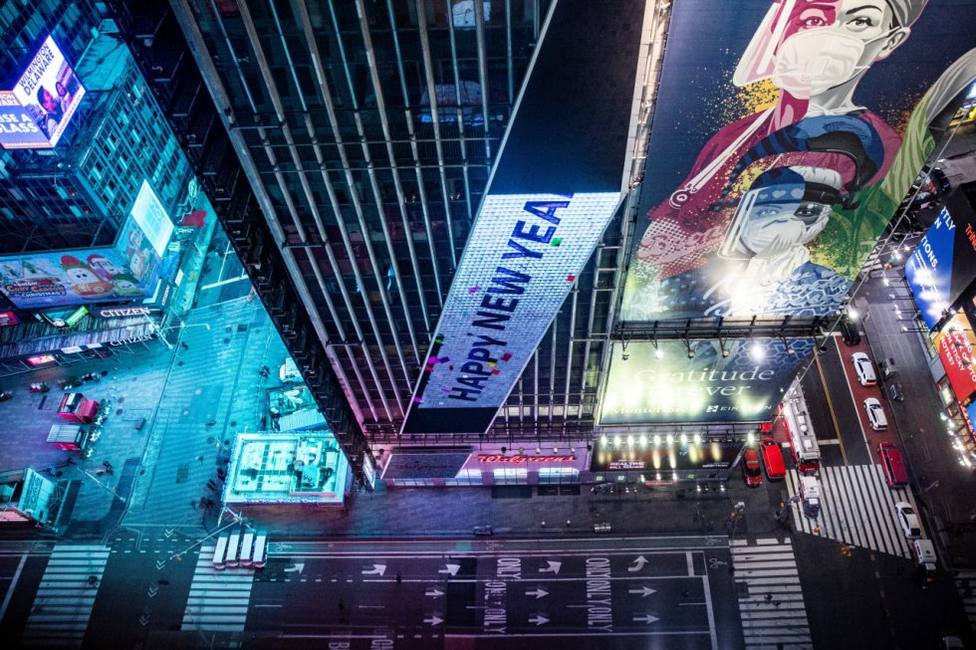 Times Square presenta un escenario poco habitual, donde se ha limitado solo ha celebrar un evento virtual de Nochevieja tras el brote de la enfermedad del coronavirus en el distrito de Manhattan.