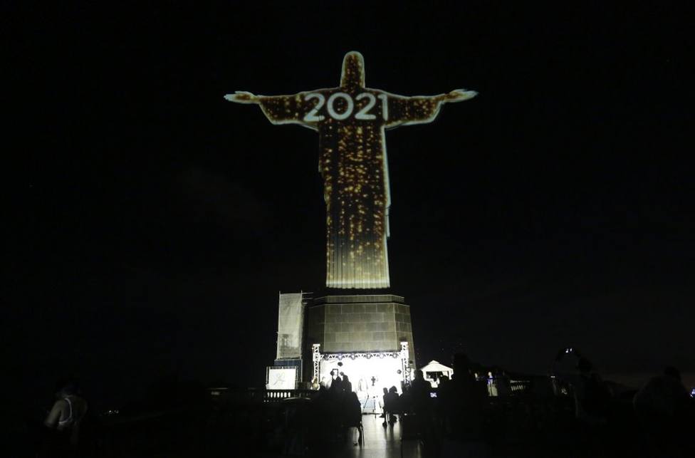 La estatua del Cristo Redentor se ha iluminado durante una celebración de Nochevieja en Río de Janeiro, Brasil, el jueves 31 de diciembre de 2020.