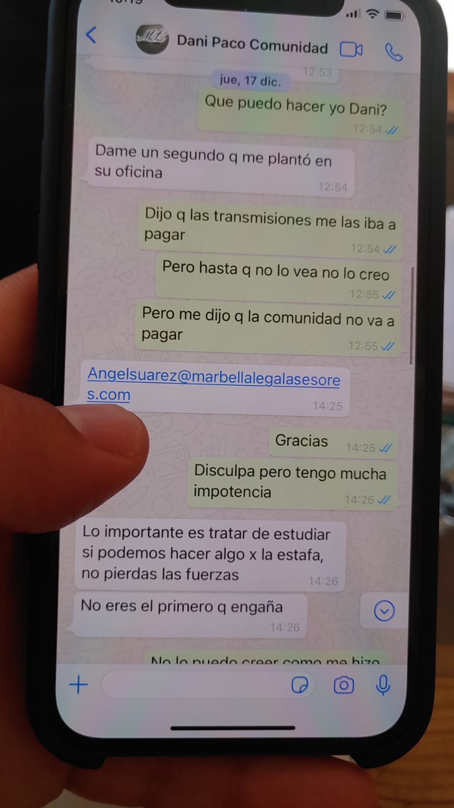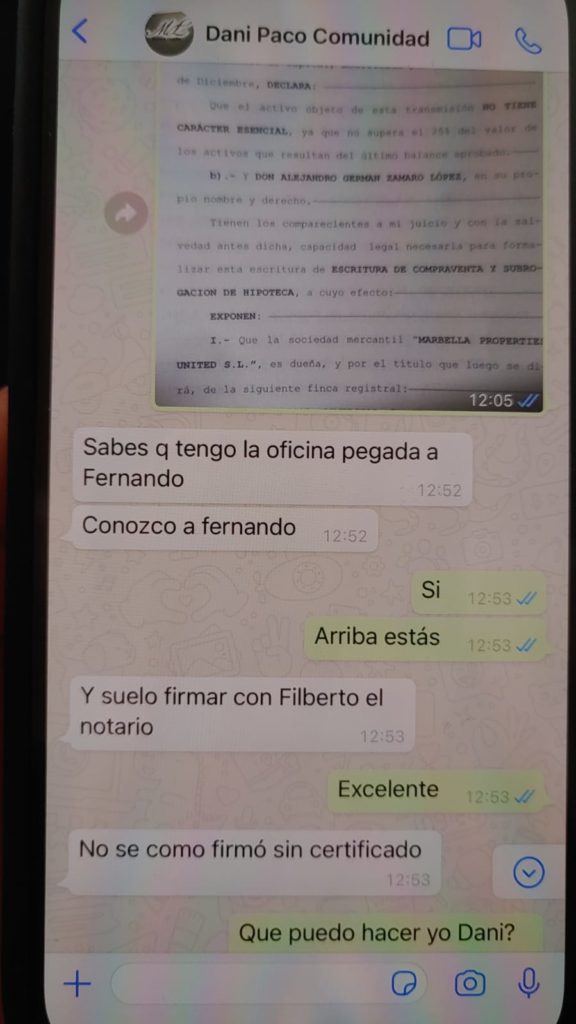 No acaban aquí los líos. En una de las conversaciones mantenidas por el supuesto estafado con el actual dirigente de Vox, éste le propone que venda su contrato ficticio del hostal a otra persona y así poder recuperar su dinero. “Renegué inmediatamente de esta propuesta porque estaría cometiendo contra otra persona la misma estafa que comegtieron conmigo”.