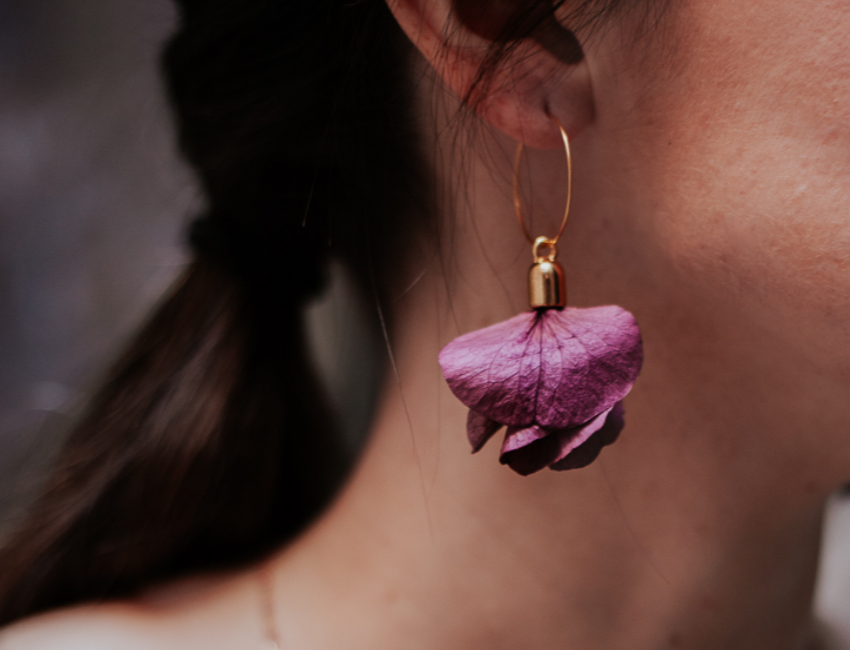 “Una flor preservada conserva todas las características de una flor natural, pero están preparadas para durar en el tiempo, es flexible, esponjoso y natural al tacto, lo que hace que trabajar en estos diseños sea todo un reto natural” explican desde Loa Bijoux, una nueva marca de bisutería que está a punto de lanzar su colección con este tipo de piezas únicas.
