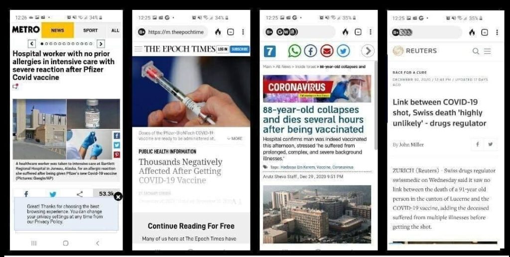 Muchos ancianos están muriendo al poco tiempo de ser vacunados y ésto no lo cuentan en los medios de masas comprados por las élites que están llevando acabo este genocidio. También vemos que los medios de manera coordinada empezaron a hablar de nuevas cepas y mutaciones al poco tiempo de empezar la vacunación, probablemente para echarle la culpa al “virus mutante” en lugar de los estragos y efectos secundarios que mucha gente está padeciendo después de ser vacunados.