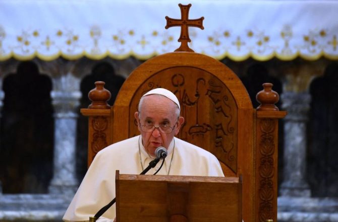 Después de agradecer el saludo de bienvenida del Patriarca Ignace Youssif Younan, así como a la señora Doha Sabah Abdallah y al padre Ammar Yako por compartir sus testimonios de fe en medio de un duro escenario de violencia; el Papa expresó su gratitud con Dios por haberle permitido vivir este encuentro.