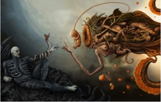 ¿Qué hace un algoritmo en el ADN humano?: cambiar resultados aleatoriamente, o a placer de quien lo programó. Y eso es lo que investigadores como el catedrático Carlos Delfino, han llamado «La gran intervención de la raza humana», pues lo que se hizo con la incrustación del código genético fue básicamente realzar la parte material sobre la parte espiritual, o el cuerpo sobre el alma en términos del dualismo cuerpo-alma que ha sido una cuestión eternamente pendiente en la antropología filosófica.