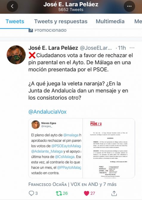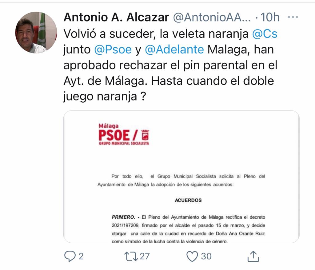 Alcázar se ha aprovechado del trabajo y de la actividad del expresidente de VOX Málaga para intentar ponerse una medalla ante alguien. Hacer una denuncia que ya había realizado José Enrique Lara es ridículo, penoso y muy triste. Robar la fotografía de un compañero de partido para silenciarlo es lamentable. No es la primera vez que ocurre algo semejante, ya el Pinocho de Sevilla tuvo la misma actuación. Parece ser que los discípulos están aprendiendo la mala praxis de sus maestros.