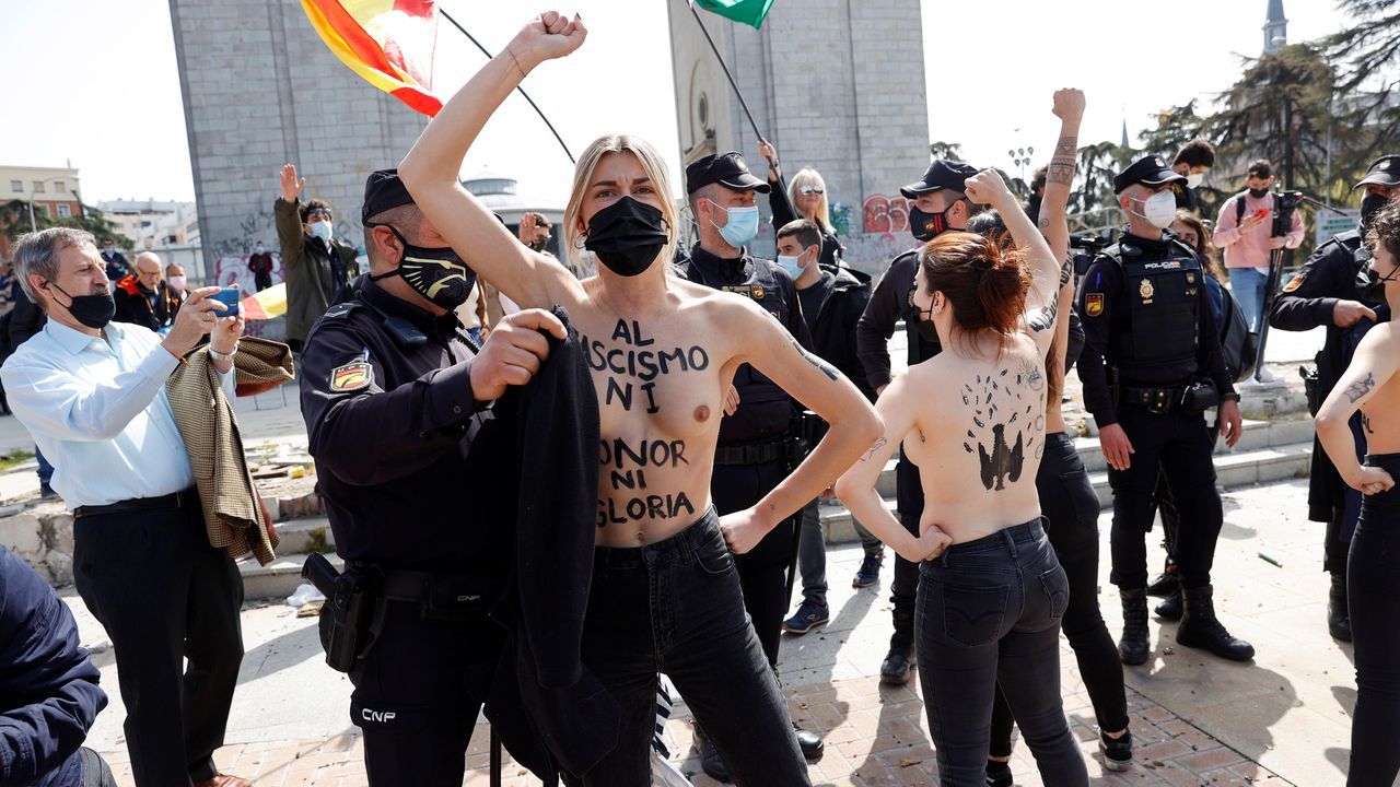 “Zorras”, “putas”, “guarras”: Franquistas y activistas de Femen se enfrentan en un acto en recuerdo de la toma de Madrid por Franco