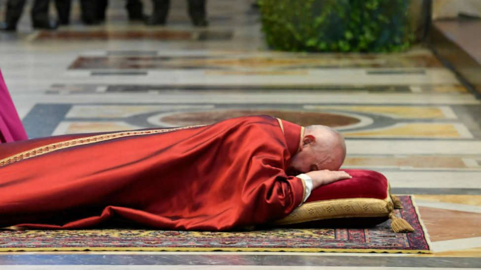 El Papa Francisco se postra en silencio frente a la Cruz y reza por la Pasión del Señor