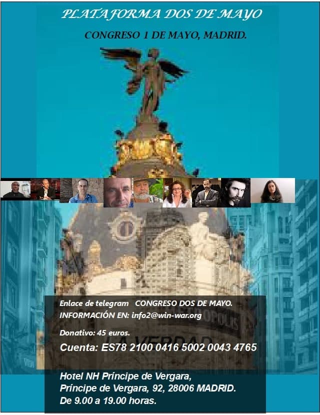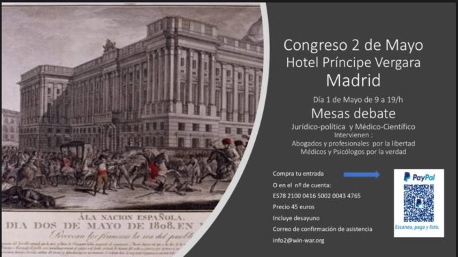 El próximo día 1 de mayo tendrá lugar en Madrid la celebración del CONGRESO 2 DE MAYO, evento organizado por una Plataforma constituida por un conjunto de movimientos ciudadanos aglutinados en torno al propósito común de establecer un debate público y abierto sobre la naturaleza científica y médica de la pandemia, sus características epidemiológicas en cuanto a los datos disponibles sobre su incidencia en la población mundial y particularmente de España, la justificación médica de las medidas sanitario-políticas que se han adoptado para combatir esta pandemia ―las cuales han restringido gravemente los derechos y libertades ciudadanas recogidos en nuestro ordenamiento jurídico y constitucional―, y la idoneidad de los tratamientos terapéuticos que se han implementado ―en especial de las vacunas―.