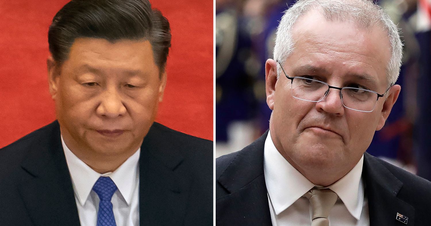 Las dos caras del conflicto: por un lado el dictador chino Xi Xinping, por el otro el primer ministro australiano Scott Morrison.