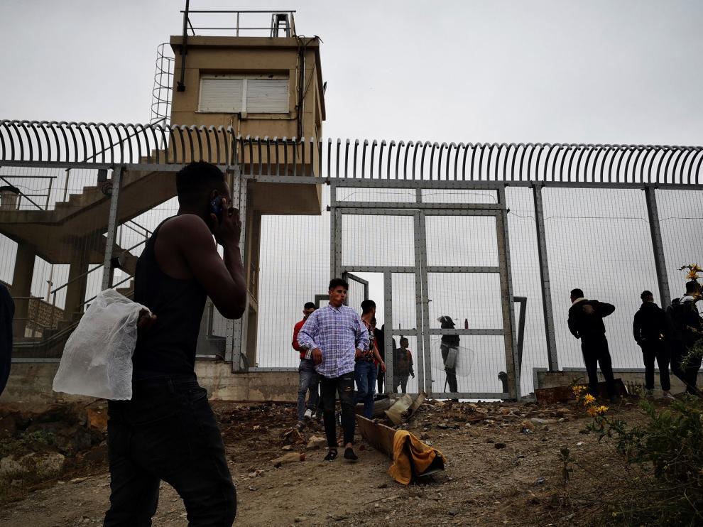 Un grupo de inmigrantes son devueltos a Marruecos por las autoridades españolas en la frontera entre Ceuta y Fnideq (Castilejos).