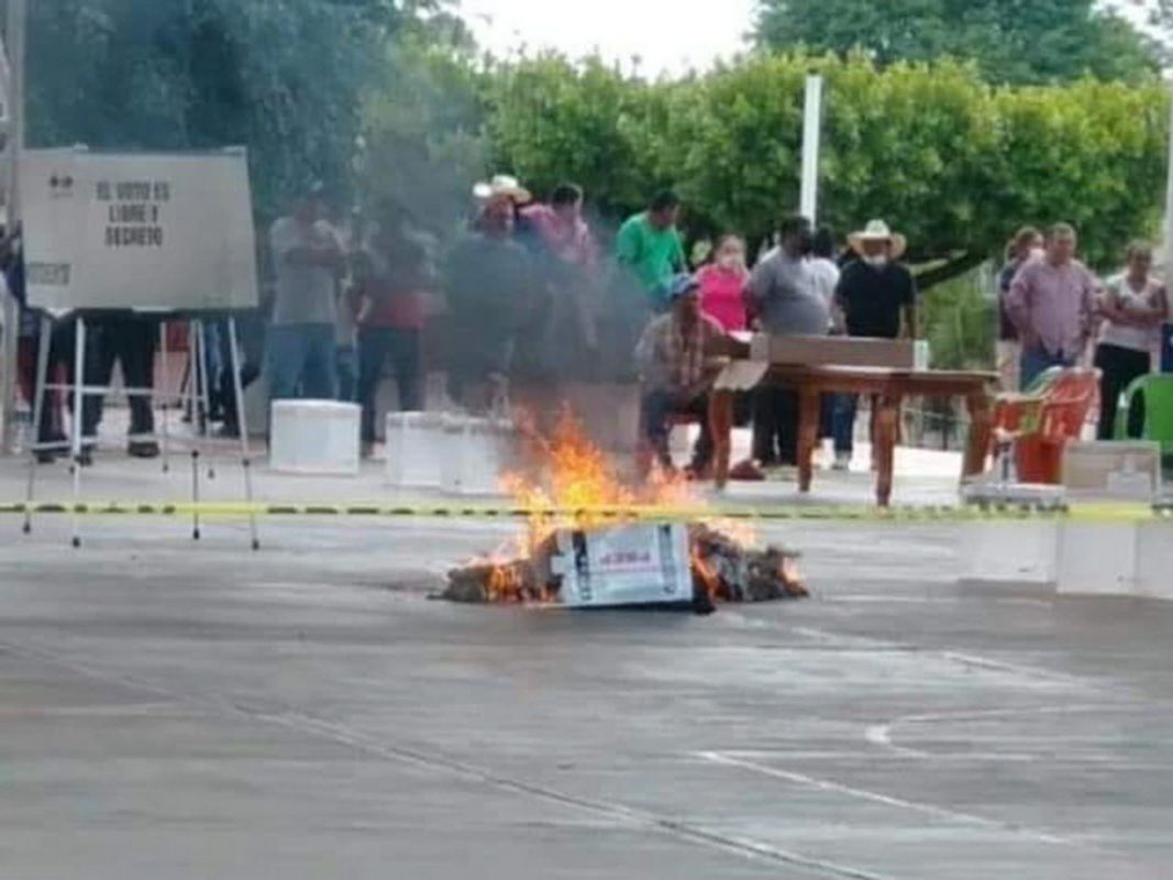 Luego, en las primeras horas de la votación, un grupo de desconocidos armados llegó al las casillas de votación para llevarse por la fuerza las urnas que contenían los primeros votos que depositaron los ciudadanos. Entre gritos y empujones se pudo constatar que no hubo quién detuviera a los infractores.