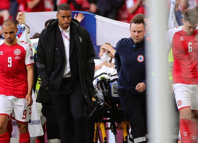 Según ha indicado la UEFA en su cuenta de Twitter, el danés ha sido trasladado al hospital tras haber sido reanimado y se encuentra estable.