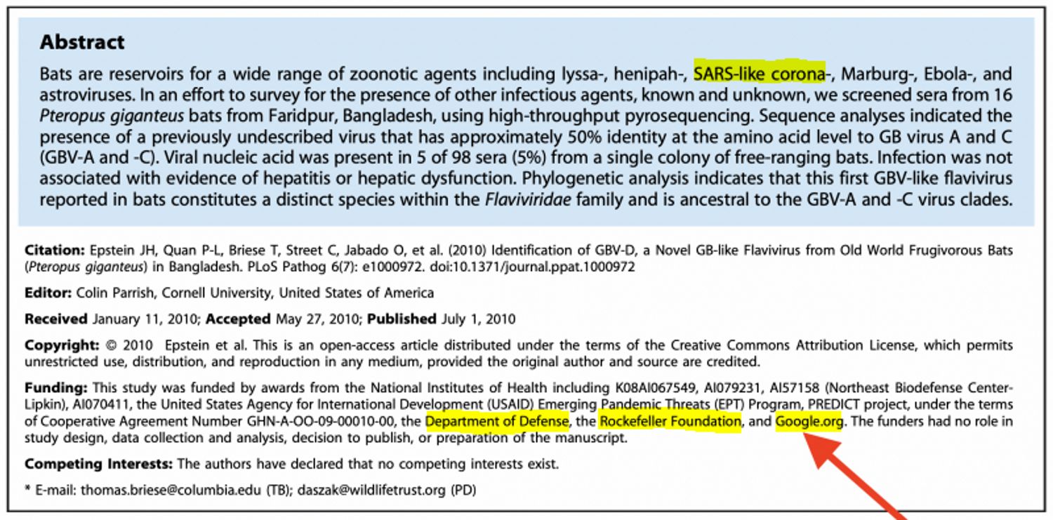 Google financió los estudios de virus pandémicos en China a través de la organización EcoHealth – Alerta Digital