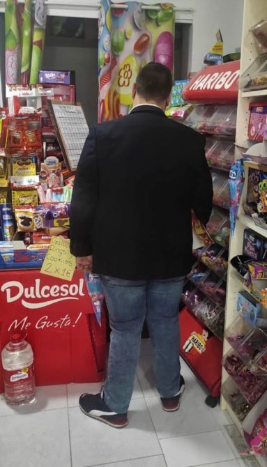 En realidad, la visita a Martiricos se redujo a una sola persona, Ricardo García, coordinador del distrito 5. Ni siquiera tuvo los reflejos de pedirle al vendedor de huevos que posara con él para hacer bulto. Dirá que él solo ya abulta bastante. Y ahí lo tienen, posando de esa guisa tan poco garbosa, de espalda a la cámara. Esto es Vox Málaga, señores, con menos glamour que un bocadillo de lentejas. De lo que no hemos sido informados es si finalmente Ricardo García se decantó por el fresón o por la nube. ¿A quién representará este atleta?