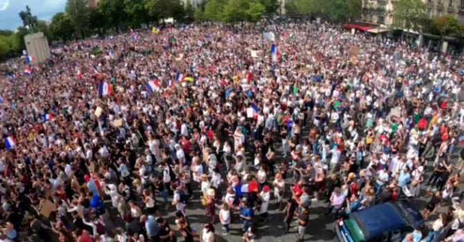 Las marchas empezaron en Francia, gracias a las movilizaciones de la “Asamblea contra el Pasaporte Sanitario”, y en Italia, gracias al “Movimiento Día Sin Miedo”, que prometieron protestas ininterrumpidas hasta que los respectivos gobiernos desistan con su tiranía sanitaria.