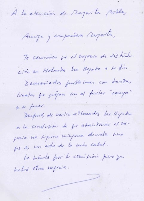 Solo estas líneas para comunicarte, aunque tus amigos de Ámsterdam quizás ya te lo han dicho, que las negociaciones con ellos han llegado a buen puerto y comenzamos ya a partir del 1 de febrero.