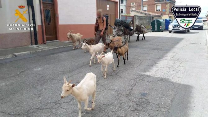 Efectivos de la Guardia Civil y de la Policía Local de Santo Domingo de La Calzada han identificado a un ciudadano francés de 33 años, cuando realizaba el Camino de Santiago en compañía de 11 animales -7 cabras (2 hembras y 5 machos), 3 burros (2 hembras y 1 macho) y un perro-. Todos los animales no tenían la documentación correspondiente.
