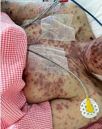 Una mujer de 49 años sin antecedentes médicos acudió a la sala de urgencias con fiebre y una grave erupción cutánea. Una semana antes la mujer recibió la vacuna COVID-19 Pfizer.