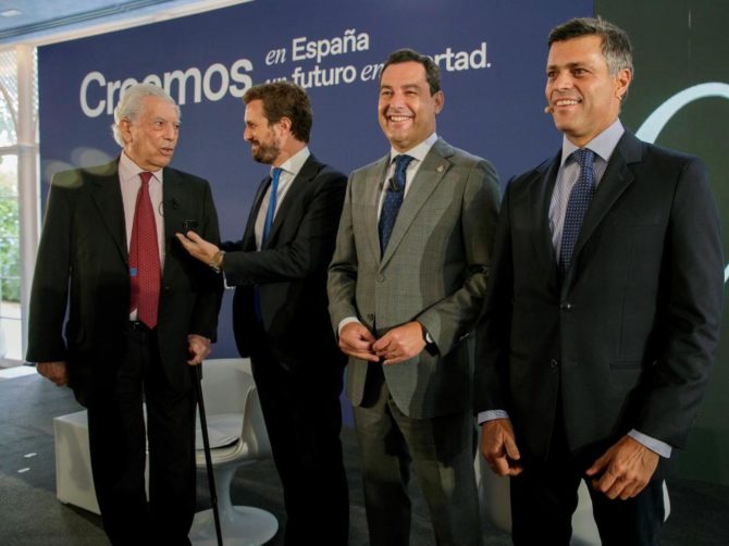 En Sevilla, donde el PP celebra la cuarta jornada de su cónclave, Vargas Llosa ha dado su apoyo a Casado en un diálogo junto al líder opositor venezolano Leopoldo López que ha estado moderado por el presidente de la Junta de Andalucía Juanma Moreno Bonilla.