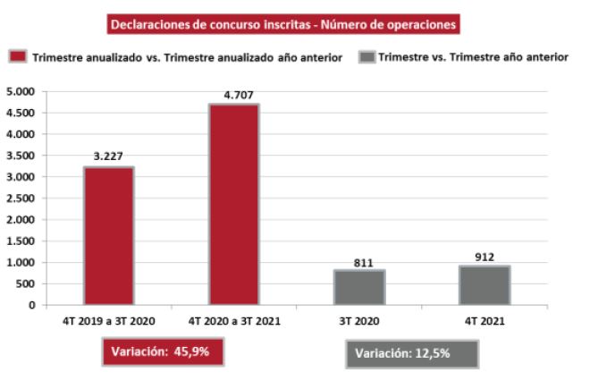Si lo comparamos con el mismo trimestre de 2019, los concursos se han incrementado un 22,8%.