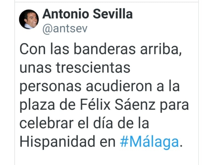 Voxes críticas.- El pasado martes tuvo lugar el día de la Hispanidad y la gestora oKupa citó a los afiliados y votantes de Vox, en una plaza céntrica de Málaga capital, (Plaza de Félix Sáenz, que no plaza de Miguel Sáenz, que no existe, son torpes hasta para eso, claro que ninguno es de Málaga capital, pues normal)