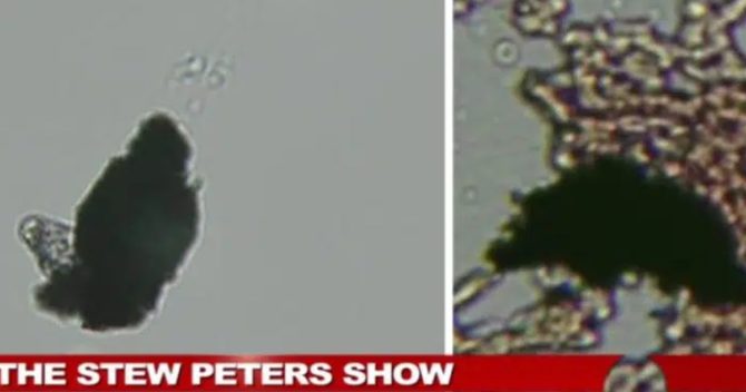 En segundo lugar, la doctora Botha recibió una muestra segura de una de las inyecciones de COVID. El examen microscópico reveló elementos electrotécnicos inorgánicos en estas inyecciones de armas biológicas. La excusa de los gigantes farmacéuticos es que su «producto contiene propiedad intelectual que tienen derecho a proteger».
