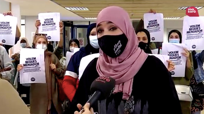 Las mujeres se han concentrado para pedir becas comedor para las personas que no tienen los papeles regularizados. “Pido una beca de comedor por mis hijos porque yo también pueda ir a trabajar”, argumenta una de las mujeres de origen musulmán.