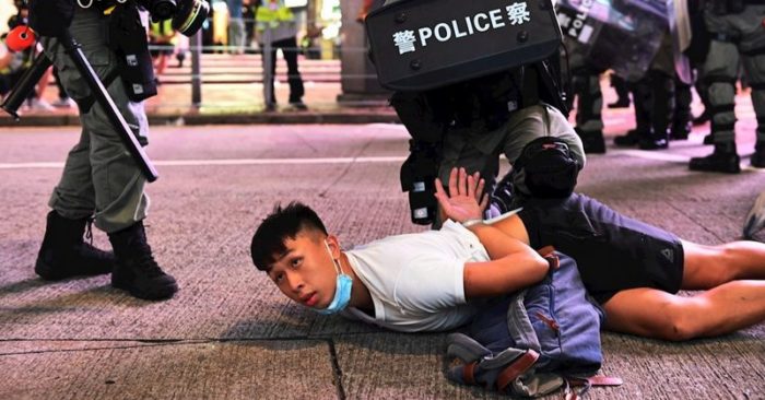 Un manifestante es apresado durante las protestas por la libertad en Hong Kong. (Toma de pantalla Twitter/@SinembargoMX)