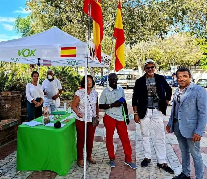 AD.- Situación muy triste para las personas que confiaron en el proyecto de Vox en Málaga por cómo está transcurriendo todo. No debe ser facil aceptar que la opción salvadora para España en la que creíste haya degenerado tanto en tan poco tiempo. Si creen que exageramos, observen la foto de la mesa informativa instalada estos días en el municipio de Benalmádena. Sobran los comentarios. La coordinadora local, Yolanda Barnenstein, y el coordinador zonal, José Antonio Macías, son el contrapunto cromático en la imagen. Y nos alegramos de ello. Es bueno que sepamos que Vox, al menos en Málaga, ha apostado por la multiculturalidad, la diversidad y el sincretismo antropológico. Las cartas boca arriba. Esa sin embargo no es hoy la cuestión.