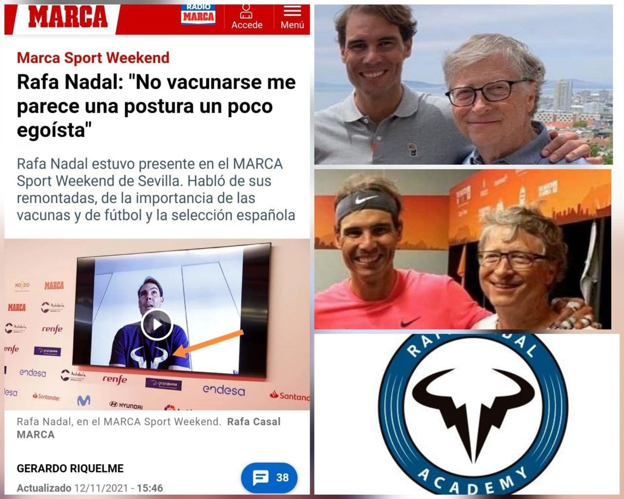 Pienso que Nadal, no sabe nada de este personaje siniestro, que es el Bill Gates y si apoya las vacunas es porque ha tomado referencia de todos los medios de comunicación.