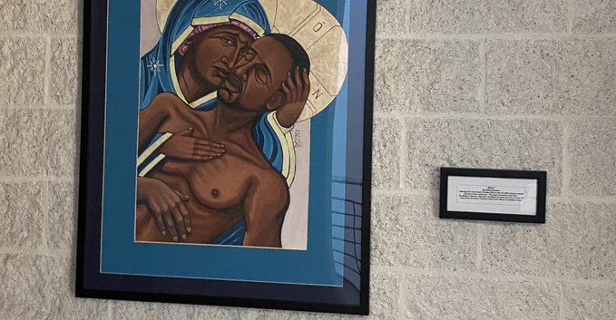 La Universidad Católica de Washington reemplaza a Jesús por la imagen del delincuente muerto George Floyd en los brazos de la Virgen María