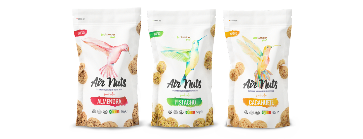 En este caso, Air Nuts es un producto único, un Crunch sano y delicioso, un snack elaborado con frutos secos y que se comercializa en tres variedades: almendra, pistacho y cacahuete.