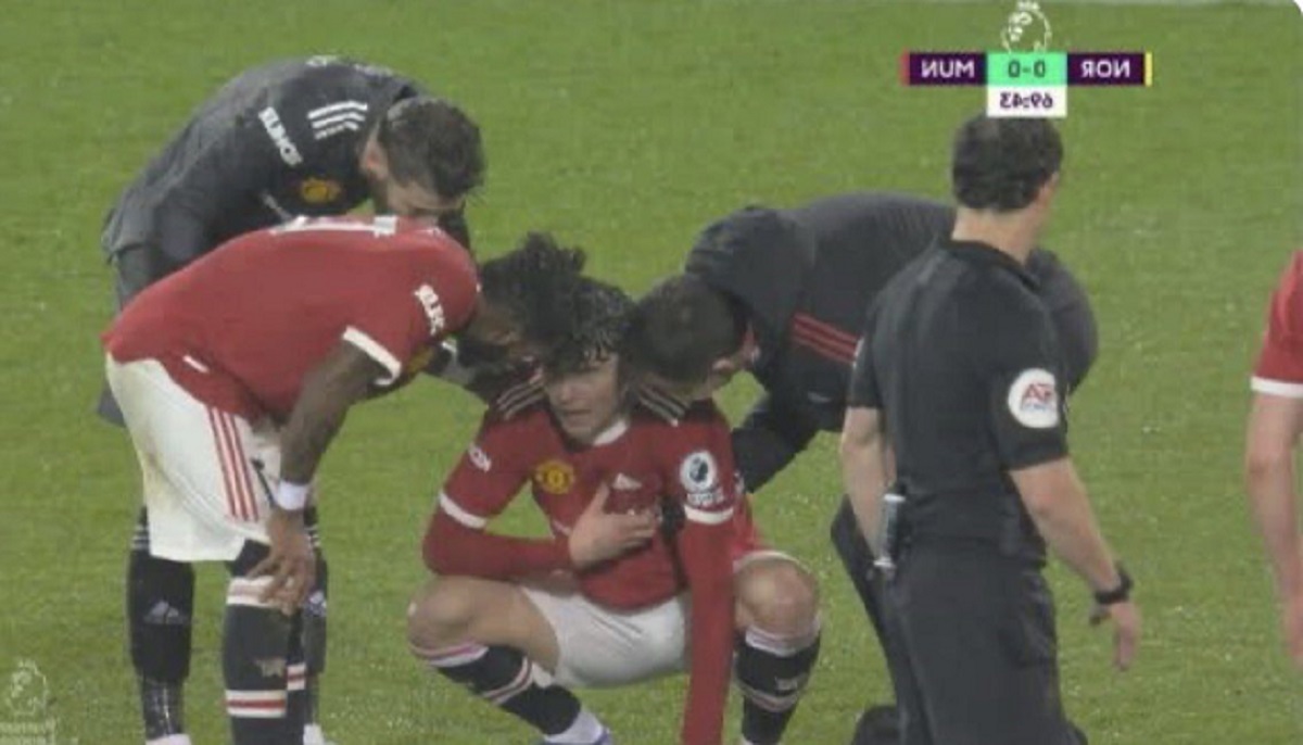 Con algunos síntomas de fatiga, le costó abandonar la cancha caminando y decidieron llevárselo al vestuario sin dar mayores precisiones hasta el momento de su cuadro de salud. “Está en el vestuario. Se sintió un poco incómodo. Realmente no conozco muchos detalles. Parece estar bien y todos le deseamos lo mejor”, expresó el capitán Harry Maguire tras el juego. “Le costaba respirar y tenía dolores en el pecho. Hicieron todas las pruebas y parece estar bien”, advirtió el entrenador Ralf Rangnick.
