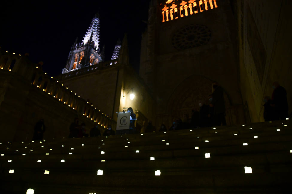 ICALBurgos.- La Escalera del Sarmental de la Catedral de Burgos acogió ayer la celebración del acto ‘Iluminar la memoria’, un evento organizado por la Fundación VIII Centenario de la Catedral. Burgos 2021 y la Asociación de Familiares de Enfermos de Alzhéimer (Afabur), con el objetivo de apoyar y rendir homenaje a las personas que padecen esta enfermedad y a sus familiares.