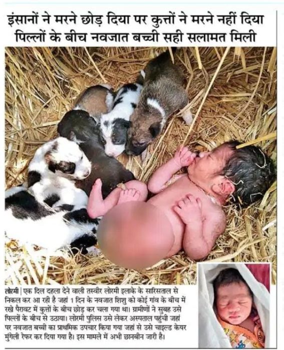 “Millón de veces mejores que los humanos”: Una bebé recién nacida y abandonada en un campo en la India sobrevive gracias a cachorros que le dieron calor
