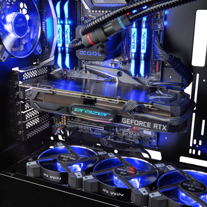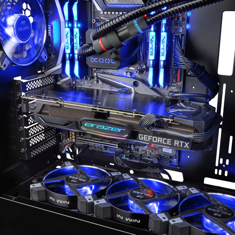 Su carcasa In Win con iluminación aRGB y panel lateral de cristal templado, con anclaje sin tornillos, proporciona al gamer la capacidad de disfrutar como un profesional y personalizar el equipo a su gusto, facilitando un rápido y cómodo acceso al interior del equipo. La cámara superior de la fuente de alimentación, no sólo hace que el sistema esté más limpio, sino también crea un flujo de aire ideal en todo el chasis. El filtro de polvo inferior es muy accesible y está diseñado para una extracción rápida. Dos compartimentos superiores para unidades permiten un fácil intercambio de discos duros. El sistema Cooler Master Liquid ML120L V2 con refrigeración líquida completa esta configuración, asegurando una refrigeración óptima.