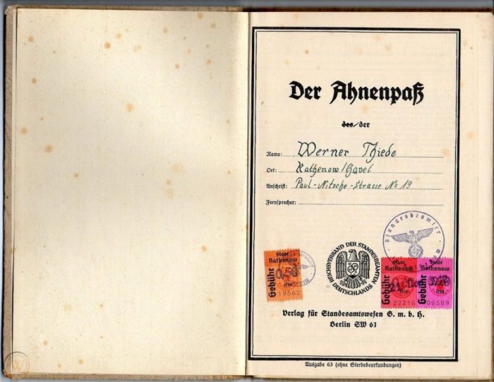 El partido Nazi introdujo el “Ahnenpaß” (pasaporte del ancestro), que acreditaba que los ancestros de una persona no eran judíos: solo así se podía acceder a museos, edificios públicos, teatros, escuelas y lugares de trabajo”.