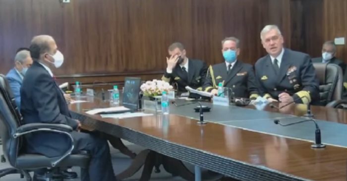 El vicealmirante Kay-Achim Schönbach, jefe de la Marina alemana, hablando en la India sobre Ucrania. 22 de enero de 2022 (Twitter/Captura de pantalla @visegrad24)