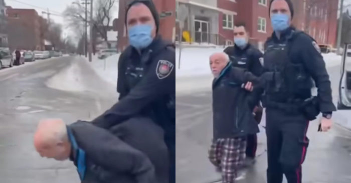 VC.- Un anciano canadiense fue arrestado y esposado el domingo por la policía de Ottawa después de tocar la bocina en apoyo a los camioneros del “Freedom Convoy” que se vienen manifestando por los mandatos COVID-19. La familia del hombre denuncia que el arresto fue agresivo.