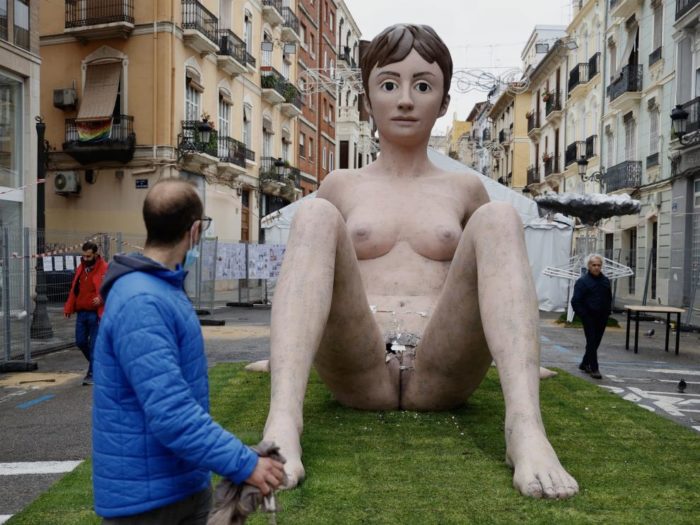 Destrozan la vagina de un monumento sobre el cuerpo femenino de la Falla Lepanto