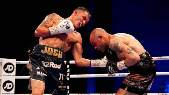 Kiko Martínez contra Josh Warrington durante su pelea por el título mundial de peso pluma de la FIB en el First Direct Arena | CORDON PRESS